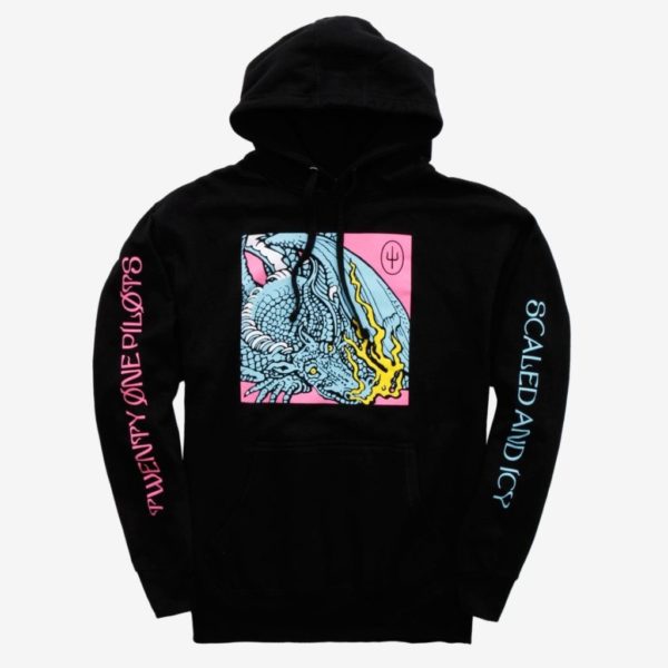 As part of the Hot Topic Hoodies collection, this design also features the band and album name on the sleeves. Fortunately, the price of the Twenty One Pilots Scaled And Icy Album Cover Hoodie is no reason to “stress.” The cost of this sweatshirt can be found below: