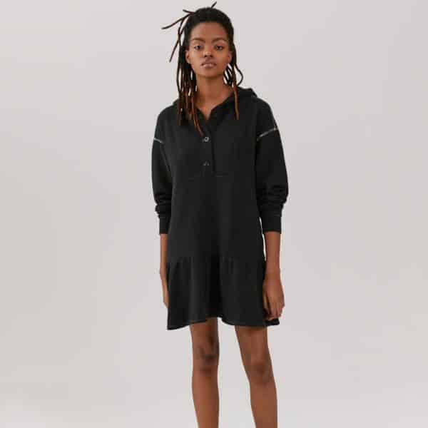 The dress is made entirely of soft cotton and is available in black or light brown. As a styling tip, we recommend wearing biker shorts underneath. The Dottie Hoodie Sweatshirt Dress is perfect for relaxed days and is currently on sale for $65 instead of $125.