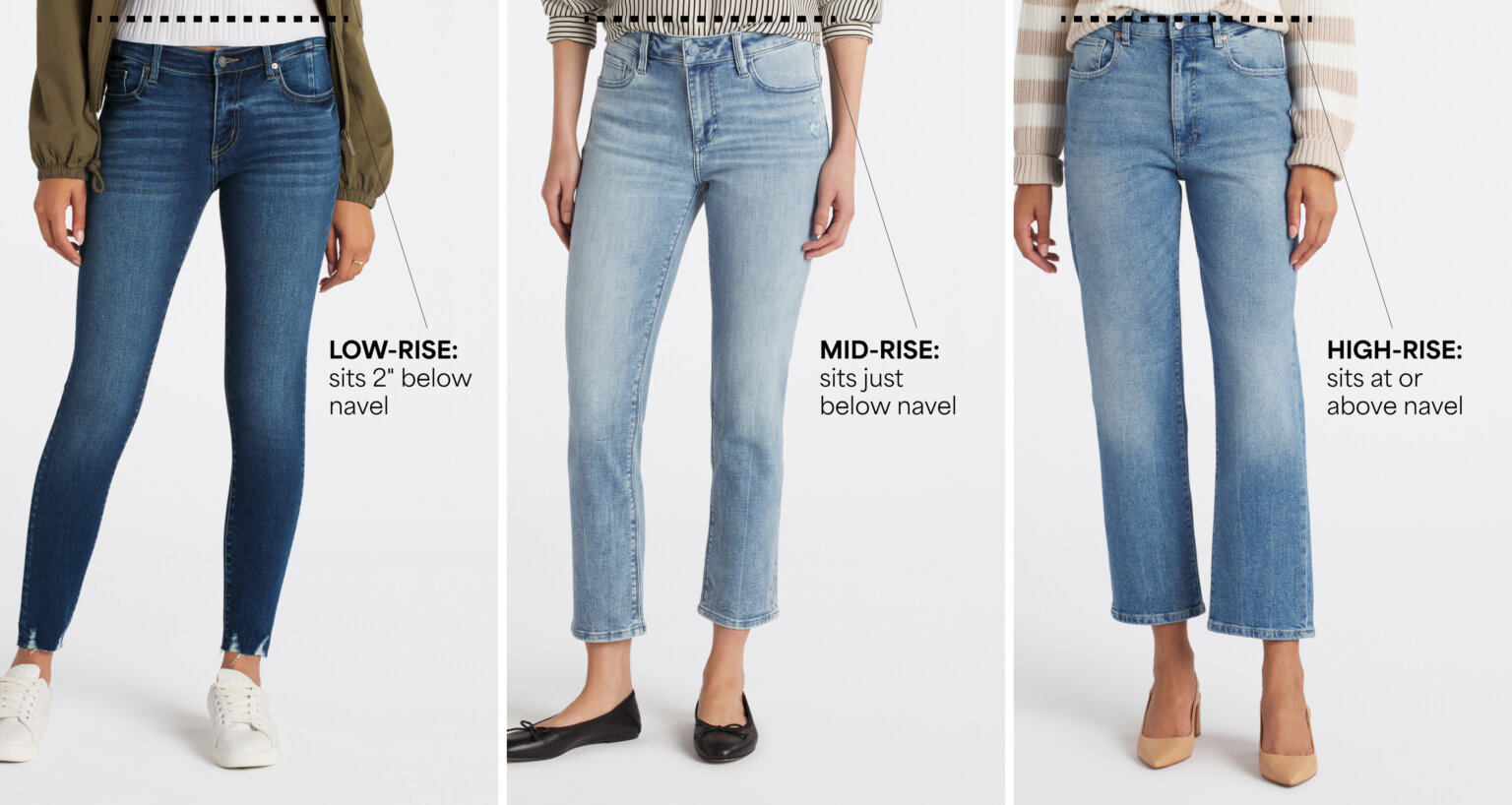 Mid-rise jeans sit just below the belly button and are our MVP (Most Valuable Pair) among jeans. “Mid-rise jeans sit at your natural waist, making them comfortable and classic,” says our stylist Molly. The mid-rise also makes them particularly versatile—they go with almost any top length, making them an essential part of your wardrobe.